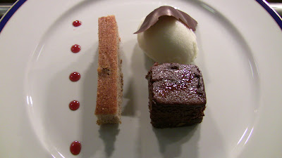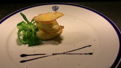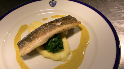 The rest of tonight’s meal consisted of two dishes from The French Laundry. The first is the iconic Salmon Tartare with Sweet Red Onion Crème Fraiche, and the second is Dungeness Crab Salad with Cucumber Gelee, Grain Mustard Vinaigrette and Frisee Lettuce. The cornets were a last minute decision as we had time to play and thought it would be a nice surprise for our guests (which it was!). Dan Reed, our Australian Chef and I knocked up the tuile mix and salmon tartare in record time only to find our mix was to short; the pastry broke each time we tried to shape the cornets. Not to be outdone, we remade the mix and plowed on to victory! The crab salad is very beautiful with the cucumber juice jelly lifting the dish incredibly well. A special thanks to Shane Miller the Chef pictured on the left in the photo below; Shane, Dan, and Ioana our Sous Chef produced a great dinner! Also pictured below is Savino our Senior Butler; Savino and the front of house team served a splendid meal and provided first class service!