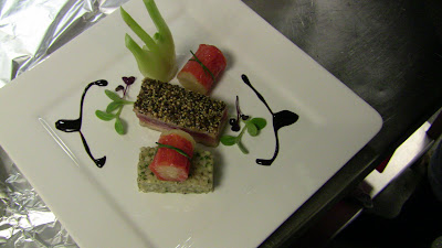 Fresh tuna, pearl barley risotto, cannelloni of capsicum,