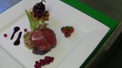 Loin of Venison sous vide, blueberry mash, redcurrants and cherry tomatoes