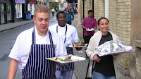 Our wonderful chefs were in the kitchen as early as 4am finishing off their dishes. Below are a few photos showing them walking to the Guild Hall at 7.30am; they looked confident and committed!