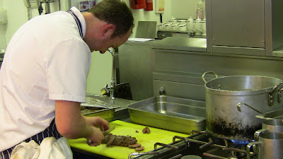 Chef Adam slicing the fillet of beef minutes before service
