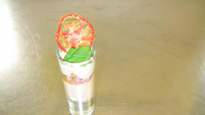 Served in a a shot glass, this neat looking dish is another favourite from Monsieur Pontais. We use a dehydrator to make the tomato garnish, this ensures the colour is kept bright and attractive.