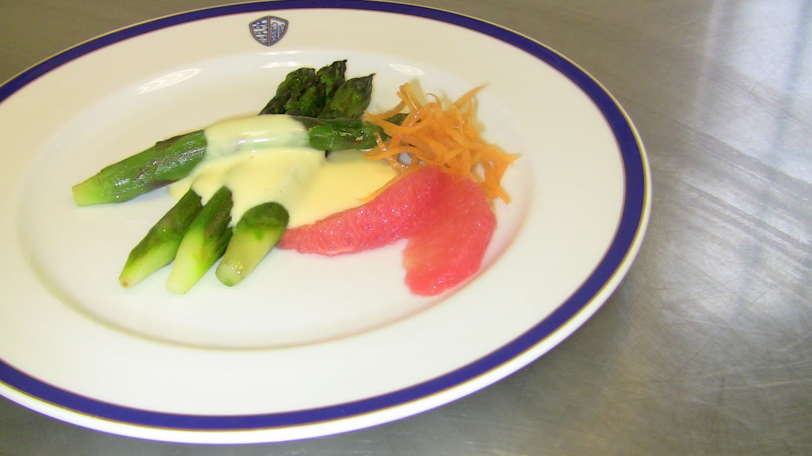 We began with locally sourced asparagus, grilled and then served with grapefruit and Hollandaise sauce.