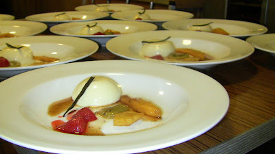 For dessert we served a coconut flavoured pannacotta with fresh fruit poached in a Champagne syrup; yum!