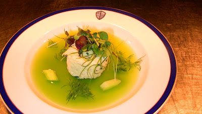 We began the dinner with a dungeness crab salad, cucumber jelly, grain mustard dressing and micro-herbs. This recipe is from the beautiful French Laundry cookbook by Thomas Keller.