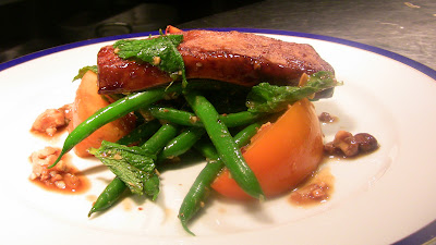 We began last night's dinner with a beetroot and goat's cheese tart garnished with caramelised red onions and reduced balsamic. The goat's cheese was lightly whipped and flavoured with fresh thyme and lemon.
